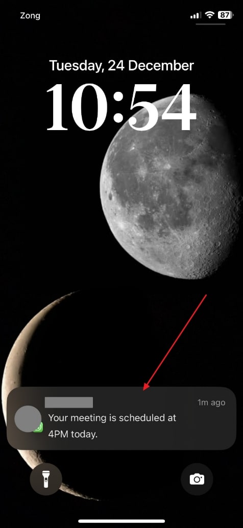 指示:在您的 iPhone 设备上,从左上角下拉通知中心,找到您要阅读的 WhatsApp 通知。