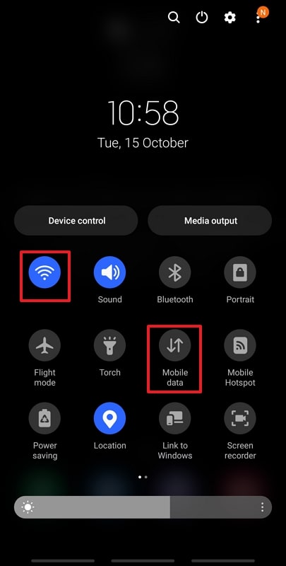 指示:在 Android 设备上,下拉通知面板,点击“Wi-Fi”图标将其关闭,然后访问 WhatsApp 聊天。