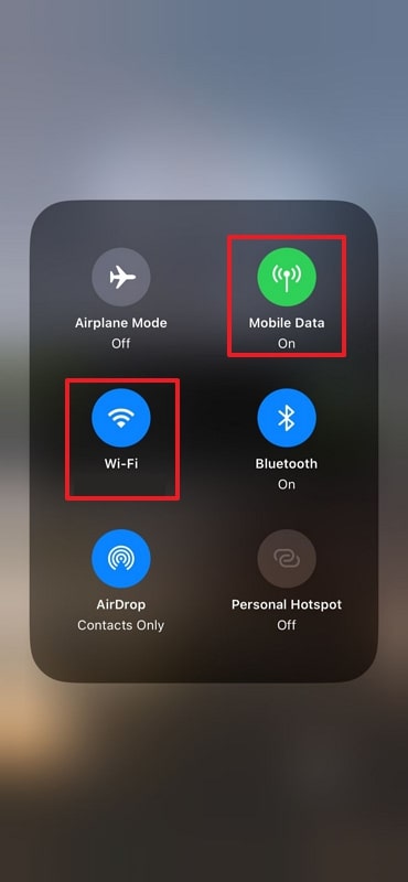 指示:在 iPhone 设备上,通过向下拖动屏幕右上角来访问“控制中心”。接下来,只需点击“Wi-Fi”图标即可将其关闭并谨慎地查看消息。