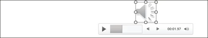 步骤 6。使用 Esc 键退出幻灯片录制后,或单击演出结束,您将在幻灯片的右下角看到一张小图片,该图片将应用于您录制的所有幻灯片。该图片是一个音频图标或静态图像,您可以通过单击它来在其控制栏中调整音量、开始和暂停音频/视频。