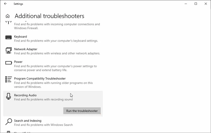 1。去设置>更新&安全>故障排除>其他故障排除器。