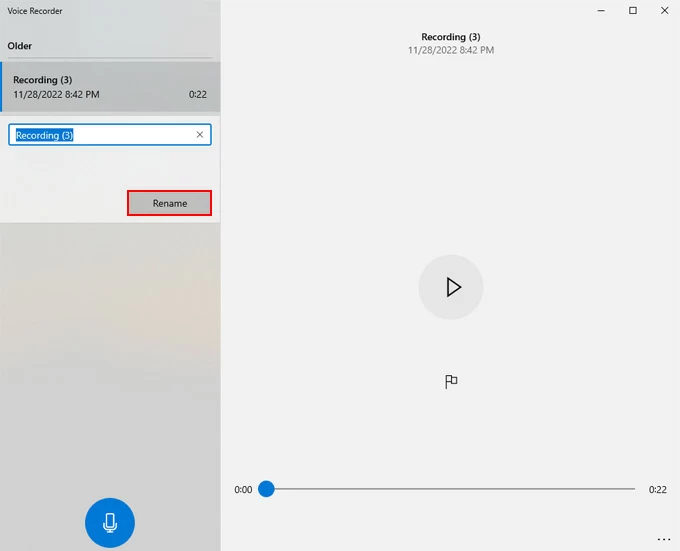 4。输入录音的新名称,然后单击重命名保存它。