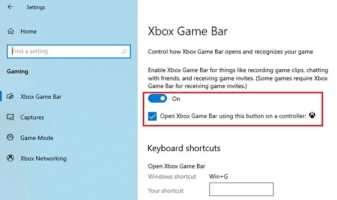 转到“设置 > 游戏”,然后搜索“Xbox 游戏栏”。确保“启用 Xbox 游戏栏以进行录制游戏剪辑、与朋友聊天和接收游戏邀请”切换开关已打开。