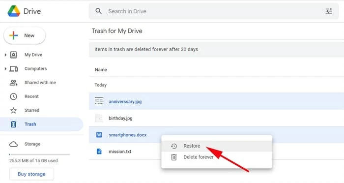 当您删除文件时,Dropbox 和 Google Drive 等云存储服务不会立即删除它们。您删除的文件已在线移至“废纸篓”文件夹中。因此,当您的文件从电脑中永久删除时,请尝试使用基于云的解决方案将其恢复。