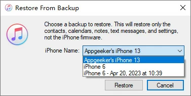 如果您在删除短信之前使用 PC 或 Mac 上的 iTunes 或 Finder 备份了 iPhone 15,则可以使用备份轻松恢复手机。方法如下。