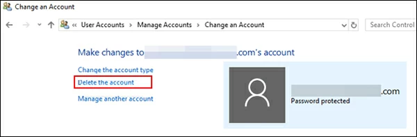 提示:如果是本地登录,您可以选择“删除Windows帐户”选项来直接删除Windows 10中的用户。