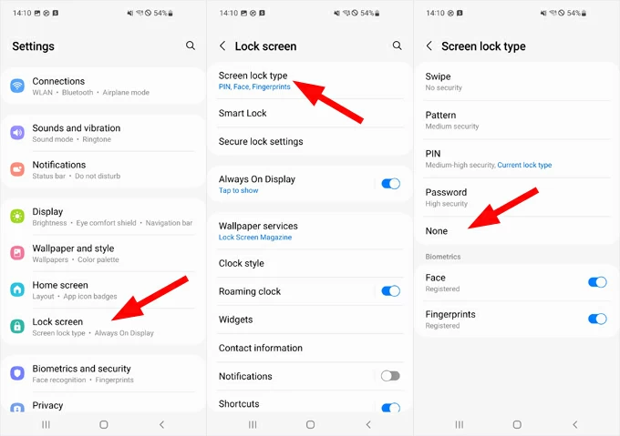 当然,从 Android 屏幕锁定中删除密码会提供暂时的便利,但您可能会发现它会严重损害您的安全和隐私。如果您确实认为在不久的将来不会使用屏幕锁定密码,那么将其从 Android 手机中删除确实有意义。您可以访问“设置”应用程序以从手机中删除密码。