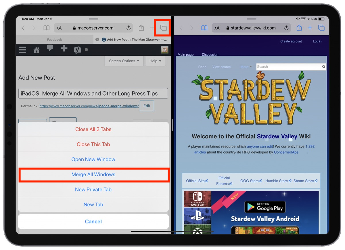 为了避免将来 iPad 意外分屏,有必要避免触摸应用程序窗口顶部的三个点,因为它们会将您带入分屏视图模式。