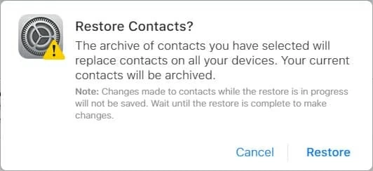 注意:您从iCloud还原的存档联系人将覆盖设备中的现有联系人列表。但是好消息是,iCloud将首先存储您当前的联系人,然后再进行早期版本的还原。这样,只要您想逆转还原,就只需要重复下面的说明即可还原iCloud备份的最新版本。