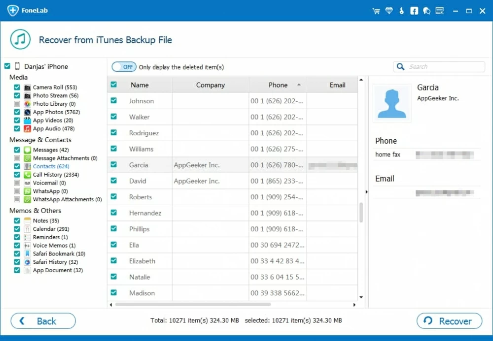 没有在iCloud中删除的联系人的备份,或者尝试了所有努力,但仍然无法从iTunes备份中提取联系人? iPhone数据恢复应该是您的最后手段。它提供了一种比iTunes所做的更有效,更灵活的方法来恢复iTunes备份,并满足您对iTunes备份还原过程的所有要求和要求,例如: