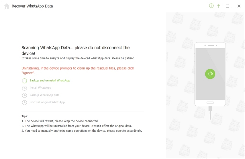 - 第 3 步:点击开始并等待它恢复 WhatsApp 数据。