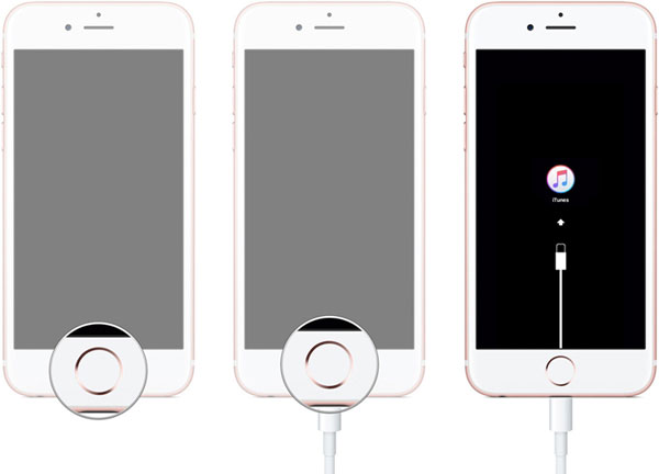 步骤4。然后,您可以将 USB 数据线的另一端连接到您的 iPhone。然后按住主屏幕按钮,直到 iPhone 上显示“连接到 iTunes”屏幕。