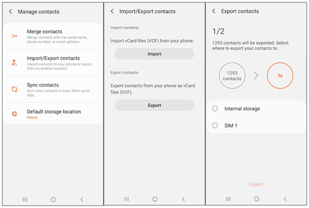- 然后,选择“进口/导出联系人”。