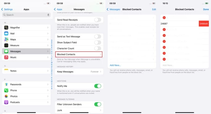 无法看到 iPhone 上被屏蔽号码的消息。对于需要从被阻止的号码访问最近消息的用户,或者如果您怀疑被阻止的联系人发送了重要消息,最简单的解决方案是取消阻止并请求重新发送。