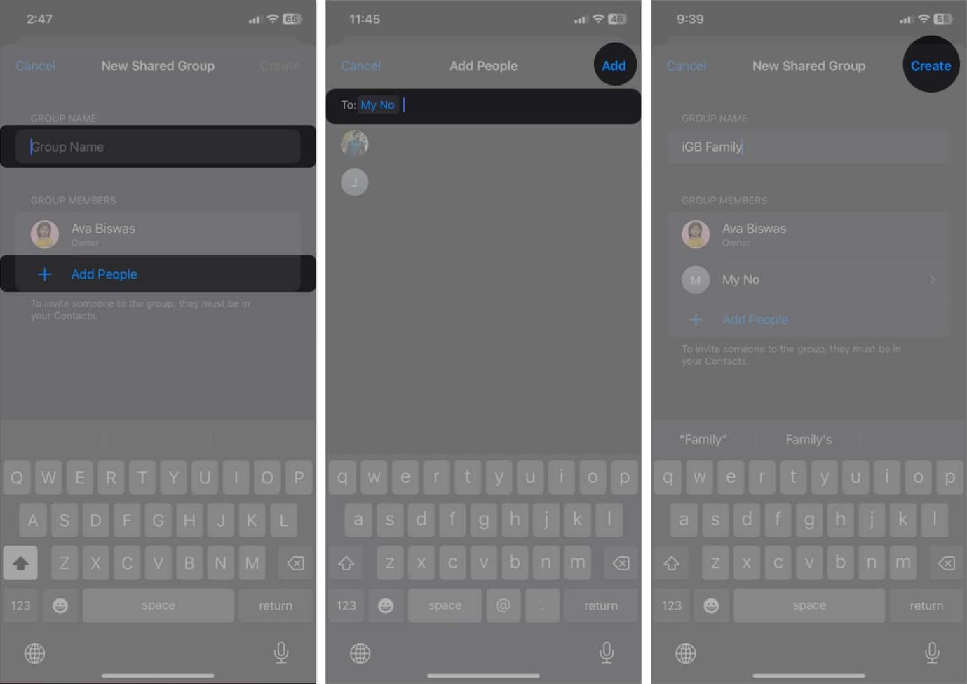 - 在将某人添加到您的家庭密码群组之前,您需要将他们的电话号码保存在您的通讯录中。