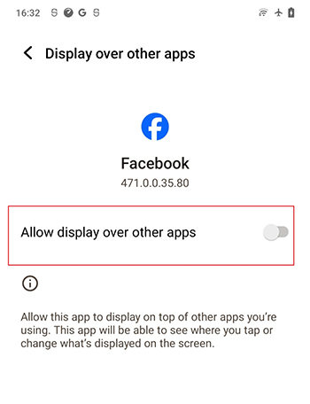 - 轻敲特殊应用程序访问 > 显示在其他应用程序之上。