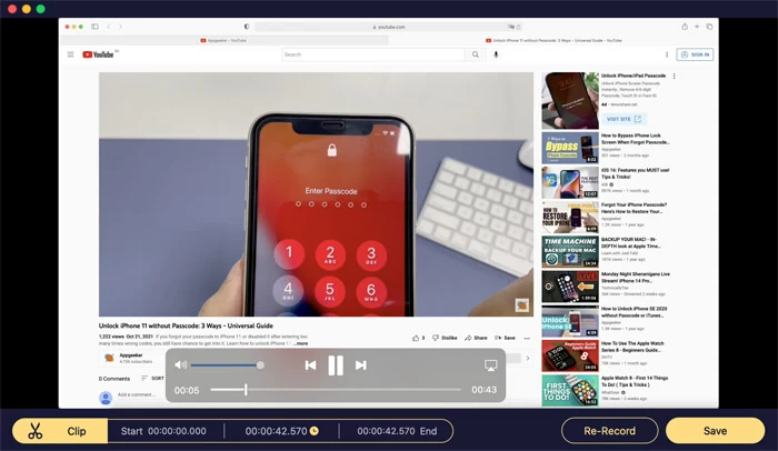 步骤6:当您停止 Mac 屏幕录制时,预览视频并单击“保存”按钮将其保存到您的 Mac 上。