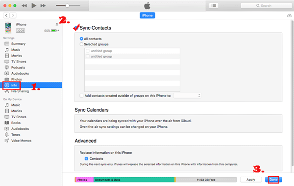 第 3 部分:如何使用 iTunes 将联系人从 Mac 导入到 iPhone