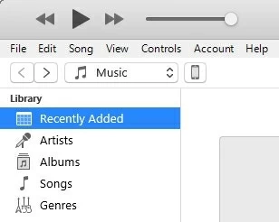iTunes 窗口显示您的设备后,选择音乐左侧窗格中的选项卡导航到您的 iTunes 资料库。