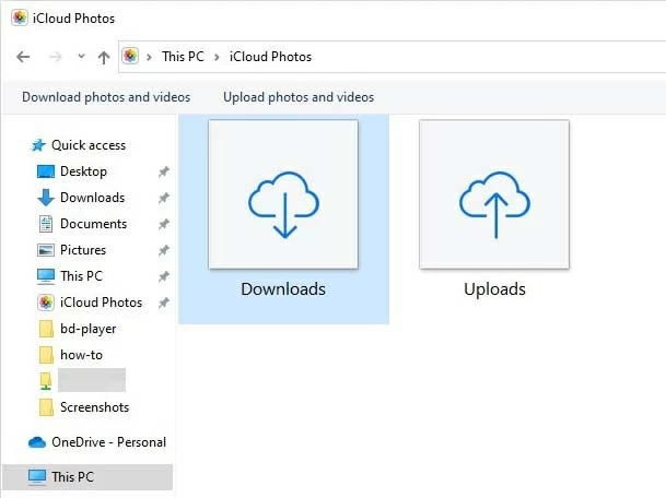 之后,打开这台电脑在文件资源管理器上并双击iCloud 照片 > 下载。在这里,您可以在 Windows 10 上访问所有下载的 iPhone 照片以供将来使用。