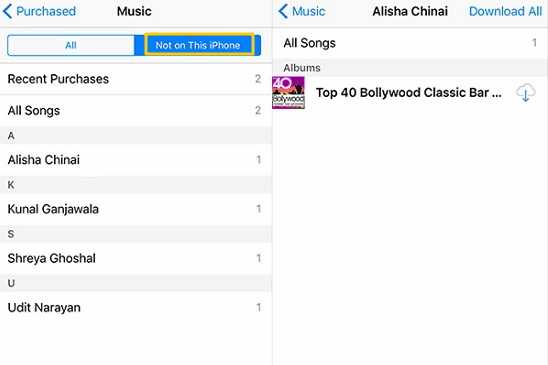 - 选择“不在这台 iPod 上”,选择您想要的音乐文件并将其下载到您的 iPod 上。