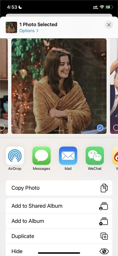 3。在iPhone上打开照片应用程序,然后选择您的首选物品。要共享多个图片,请点击右上角的“选择”以选择多张照片。