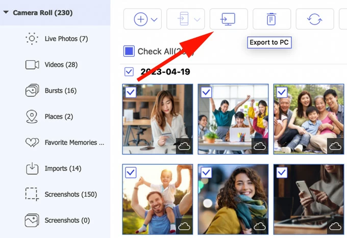 如果您想从iPhone到MacBook Air的任何文件夹中获取完整的照片库,那么iPhone数据传输是您的最佳助手。除了用高速完成批处理照片传输外,它还可以保留所有照片的原始分辨率。使用此实用软件,您可以将所有照片从iPhone转移到MacBook Air,或者从iPhone的照片库,相机卷或其他应用程序中选择性地传输特定照片。