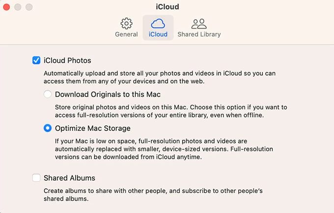 值得注意的是,当您没有启用iCloud照片并希望将所有图片的全部或部分图片传输到MacBook Air时,此方法是合适的。在Apple生态系统中,iCloud照片与照片应用程序深入集成。为了防止照片应用程序自动将iPhone照片下载到MacBook Air,您可以在传输照片之前暂时禁用iCloud照片。