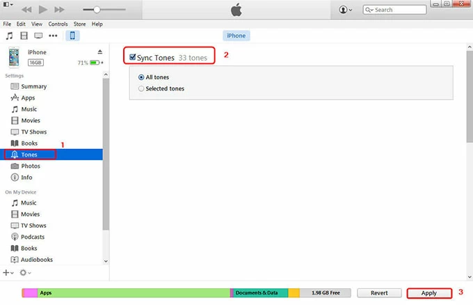 步骤 2:将铃声从 iTunes 同步到另一部新 iPhone