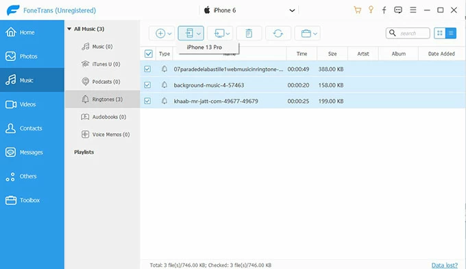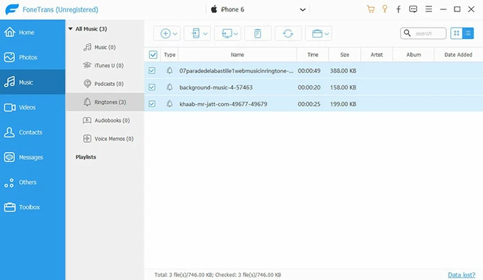 如果您想传输自定义铃声或一些从网上下载的免费铃声,请参考我们提供的第二种方法通过 iPhone 数据传输将铃声从旧 iPhone 传输到新 iPhone。