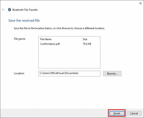 - 在您的 PC 上,允许接收从 Android 手机传输的文件,然后联系人将保存到您的 PC。