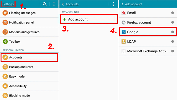 - 在您的设备上,转到“设置”>“帐户”>“添加帐户”>“Google”,在两台设备上设置 Gmail 帐户。