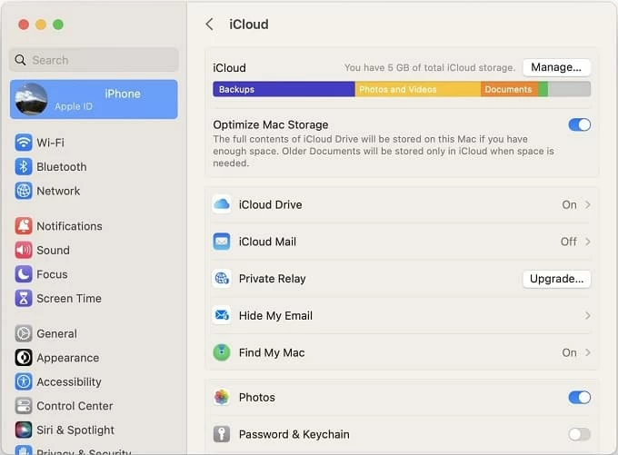 笔记:每个 iCloud 帐户总共附带 5 GB 的免费云存储空间。高级 iCloud + 每月提供更多数据流量。