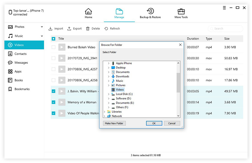 以下是如何使用 UltFone iOS 数据管理工具的“管理”功能将视频从 iPhone 复制到 Mac!