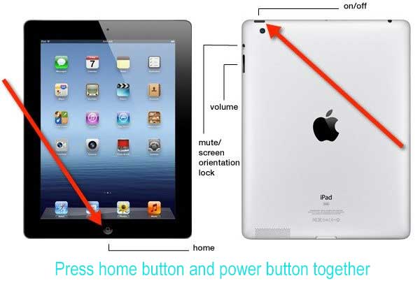 - 同时按住 iPad 上的“电源(唤醒/睡眠)”和“主页”按钮。