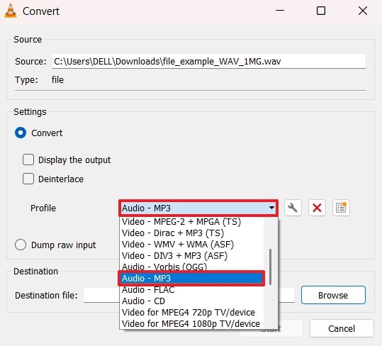 步骤3接下来,访问“配置文件”下拉列表并选择文件所需的音频格式。