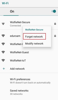 步骤 3:点击并按住您尝试连接的 Wi-Fi 网络,然后选择“忘记此网络”。