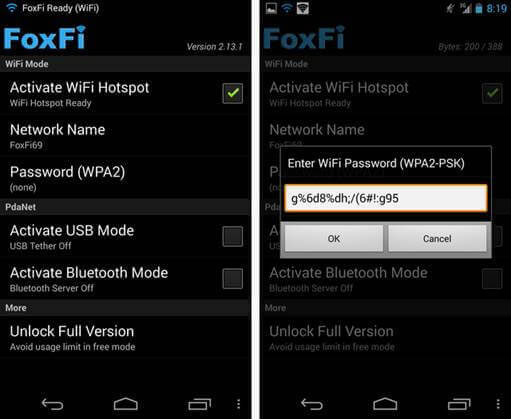 如果您的运营商不允许使用WLAN热点或者您使用第一种方法创建热点失败,您可以尝试使用Foxfi等第三方应用程序在Android手机上打开WLAN热点。