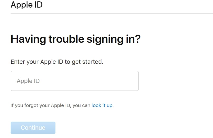 第 1 步:在任何浏览器上,转至https://iforgot.apple.com/password/verify/appleid并输入您的 Apple ID。单击“继续”。