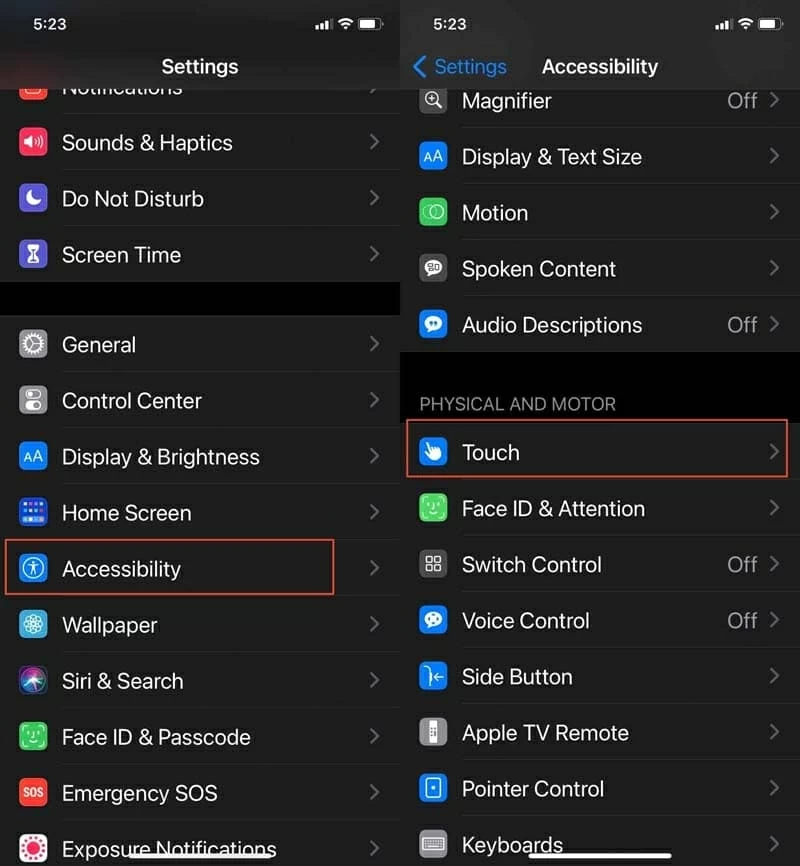 首先,在“设置”应用程序中启用 AssistiveTouch 功能,方法是:辅助功能 > 触摸。
