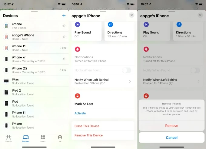 除了使用iCloud官方网站外,如果两个iPhone都可以找到我的iPhone打开,则可以使用查找我的应用将两个iOS设备链接到同一Apple帐户中,从而从共享的ICloud服务中删除iPhone。