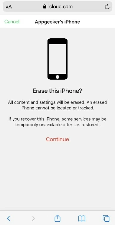 步骤 5:如果要求确认抹掉您的 iPhone SE,请选择“继续”并再次输入您的 Apple ID 密码。