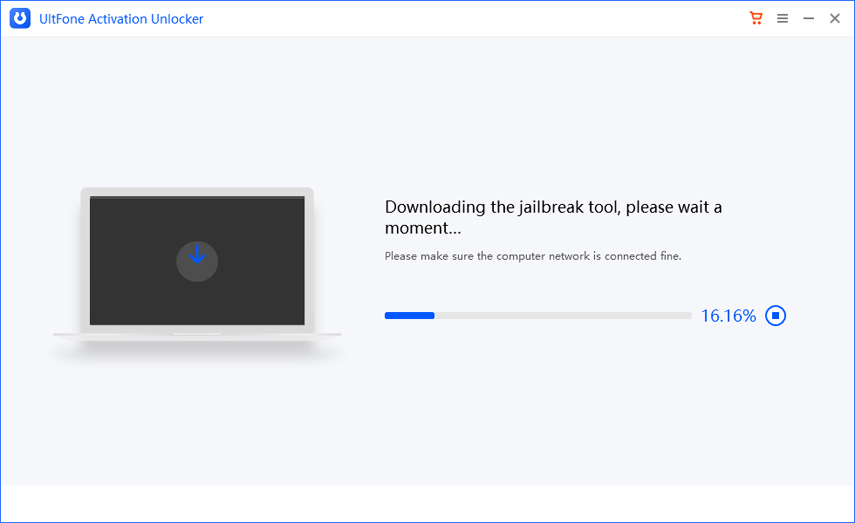 - 一旦识别到Apple设备,UltFone Activation Unlocker将自动下载越狱工具。