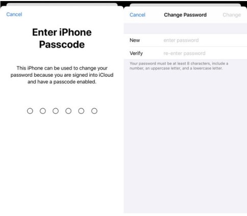 - 第 2 步:现在输入 iPhone 屏幕密码以继续。验证完成后,您将可以选择更改 Apple ID 密码。