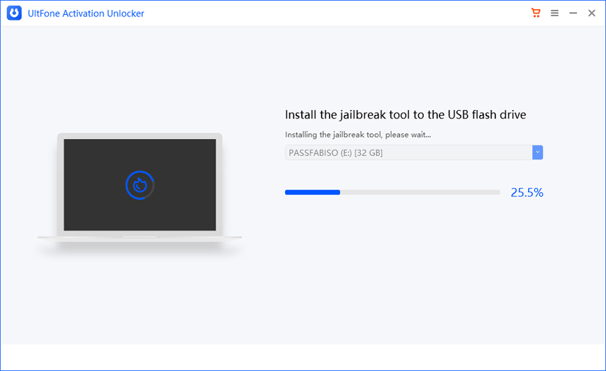 - 然后,UltFone Actiation Unlocker 会自动将越狱环境刻录到 USB 闪存驱动器。等待该过程完成。