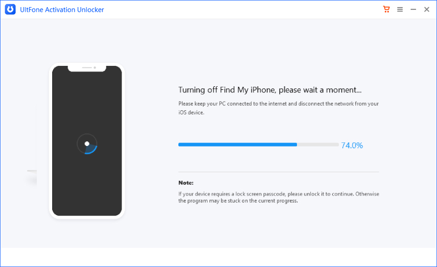 - 在计算机上下载并安装 UltFone Activation Unlocker。在系统上启动 UltFone Activation Unlocker,然后单击主界面上的“关闭查找我的 iPhone”选项。