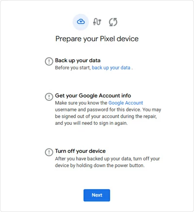 如果您拥有运行Android 10或更高版本的Pixel 3或更新的型号,则Google的官方像素更新和软件维修工具可以帮助解锁像素手机,如果您忘记了图案,密码或PIN。该工具旨在更新和重新安装Pixel手机或平板电脑的软件。它还允许完整的像素出厂重置,使您可以删除所有屏幕锁并重新访问访问权限。