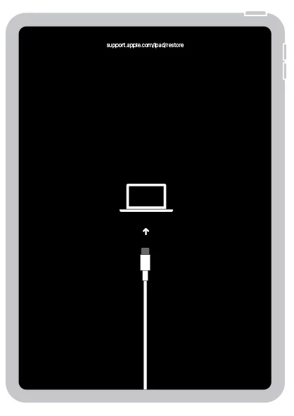 拿起您的平板电脑并将其完全关闭。然后将 iPad 连接到计算机并快速按下按钮组合,直到它从恢复模式启动,屏幕上会通过电缆和计算机识别该模式。
