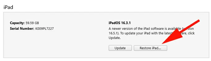在您忘记或不知道的 Apple ID 的情况下解锁 iPad 的第一种方法是使用 iTunes 进行恢复 - 只要设备上禁用“查找我的 iPad”即可。这会擦除 iPad 上的所有内容和设置,包括链接的 Apple ID 和密码。