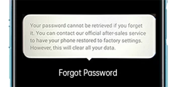 需要重申的是,由于注册的指纹方法已被切断,您可能无法使用指纹清除OPPO的锁屏密码。在ColorOS 7及以上设备中,点击“忘记密码”会出现如下图所示的提示,提示您忘记密码后无法找回,需要将OPPO手机恢复出厂设置,所有数据将被彻底清除。